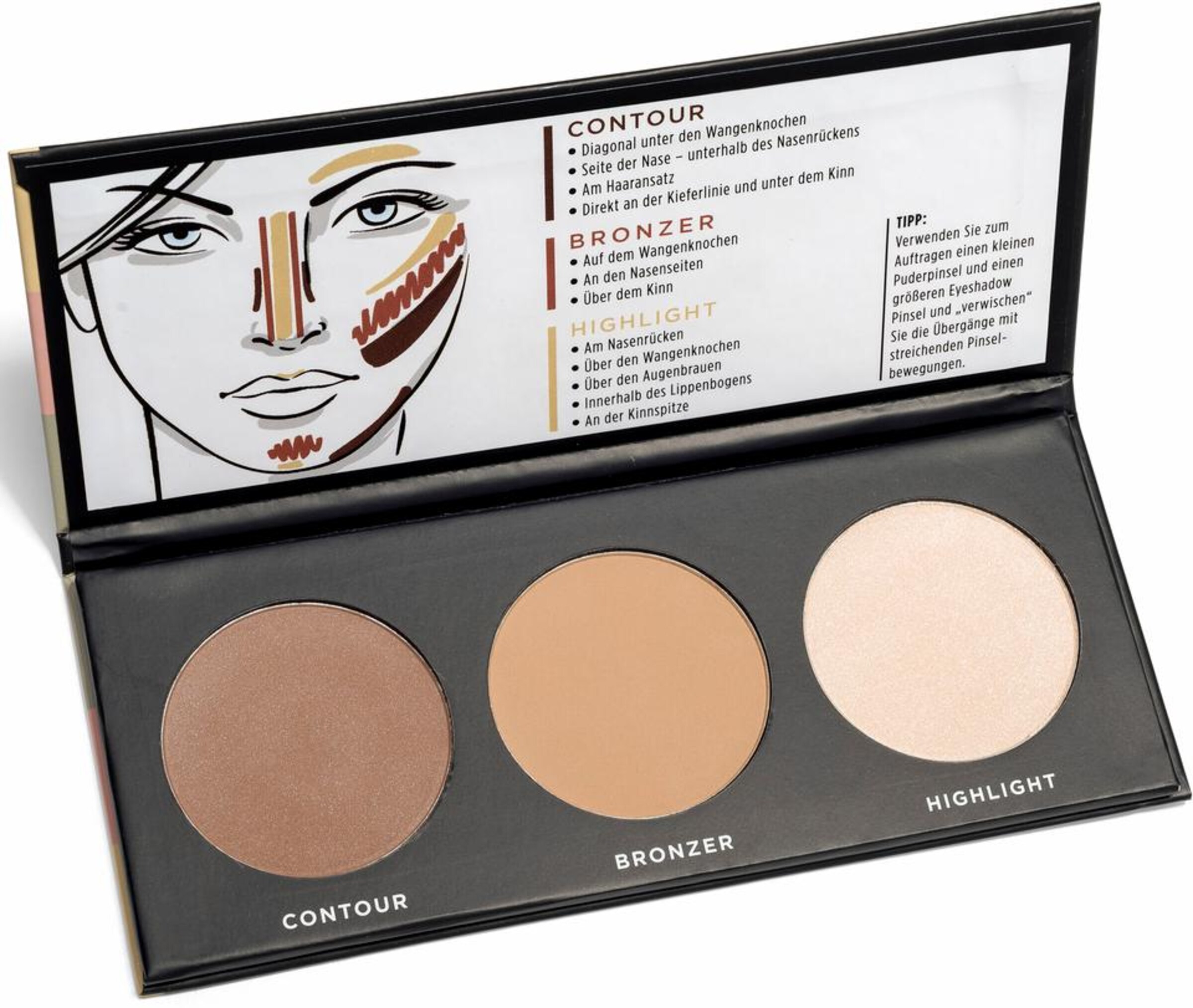 Falls Du Dich fragst, wie Du die Highlighter am besten aufträgst, haben wir hier ein paar nützliche Tipps für Dich. Der Hightlighter wird oberhalb des Wangenknochens aufgetragen, um diesen zur Geltung zu bringen. Trage ihn am besten mit den Fingern oder einem Highlighterpinsel auf und passe ihn Deinen Gesichtskontouren an. So formt er Dir in Verbindung mit dem richtigen Contouring ein schmaleres und definiertes Gesicht. Richtig auf dem Nasenrücken platziert, zaubert er Dir im Handumdrehen eine schmalere Nase. Wenn Du den Highlighter unterhalb der Augenbrauen auf Deinem Augenbrauenknochen positionierst, wirken Deine Augen strahlender und du bekommst sofort einen frischeren Look. Wenn Du Dich gerne etwas natürlicher schminkst, ist der Strobing-Trend bestimmt das Richtige für Dich. Beim Strobing wird auf das Contouring verzichtet und es wird nur der Highlighter benutzt, um gewisse Punkte im Gesicht zu akzentuieren. Es handelt sich bei diesen Punkten um die High-Points, an denen sich das Licht bricht: Die Wangenknochen, der Nasenrücken, die Oberlippe und die Augenbrauenknochen. Wie du siehst, ist Highlighter ein wahres Allround-Talent, das in keinem gut sortierten Beauty-Bag fehlen darf.
