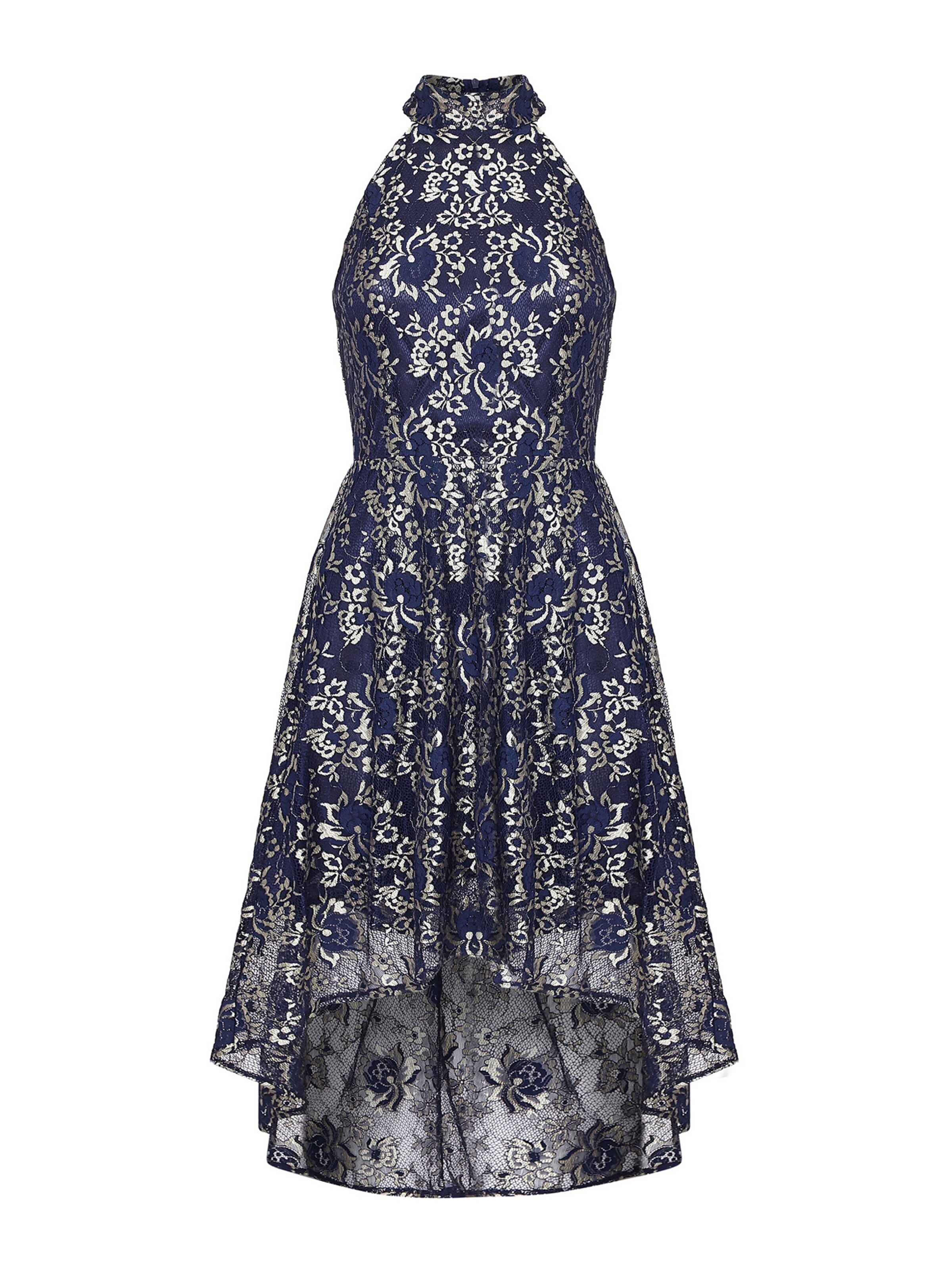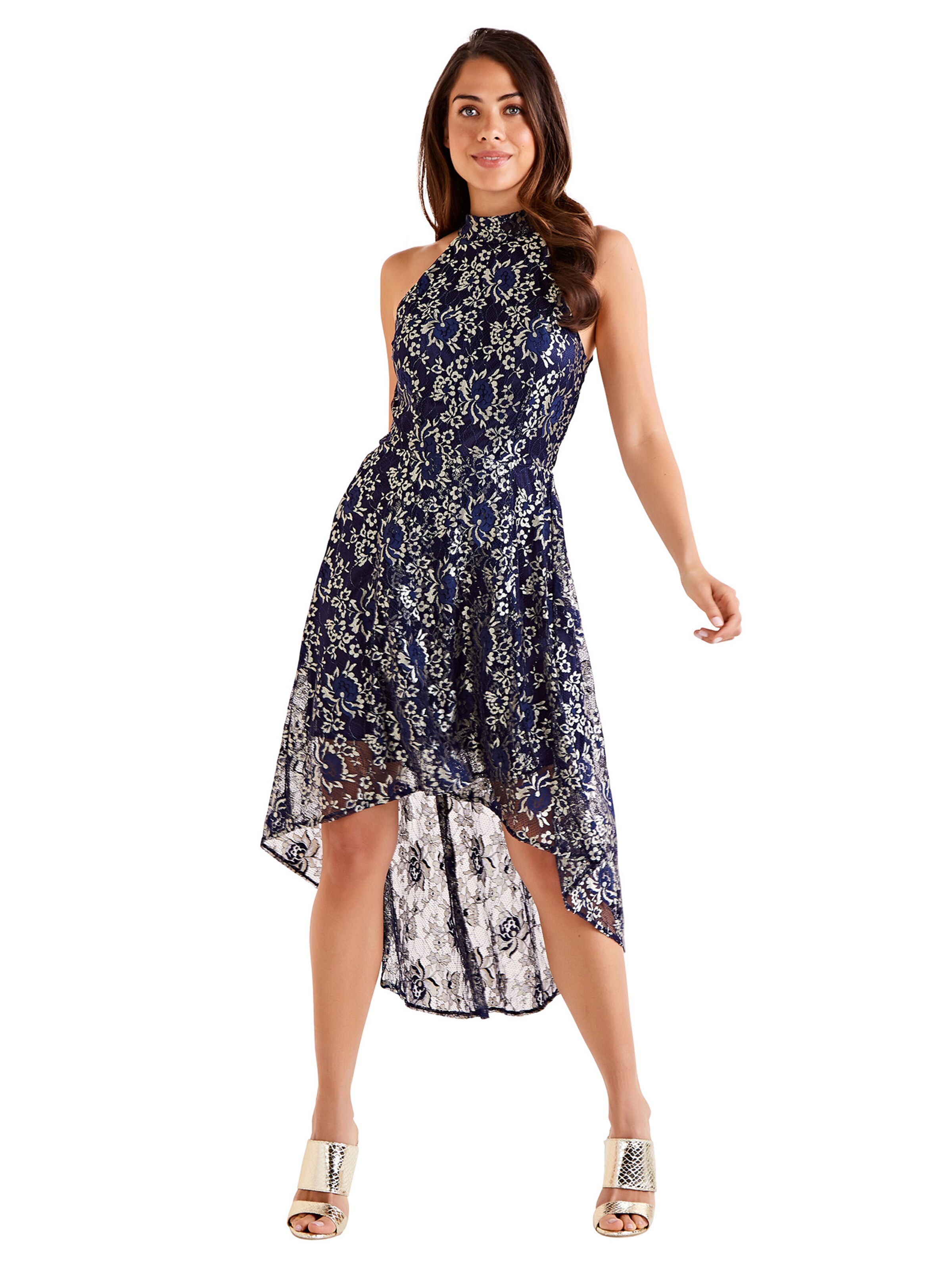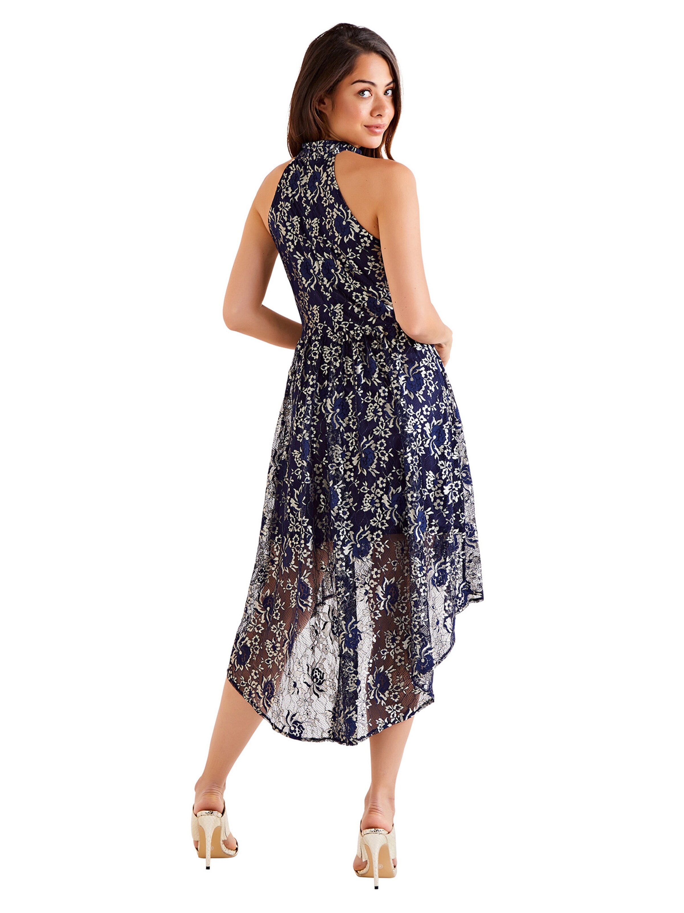 Mela London Kleid 'GOLD TRIM LACE HIGH LOW DRESS' in navy