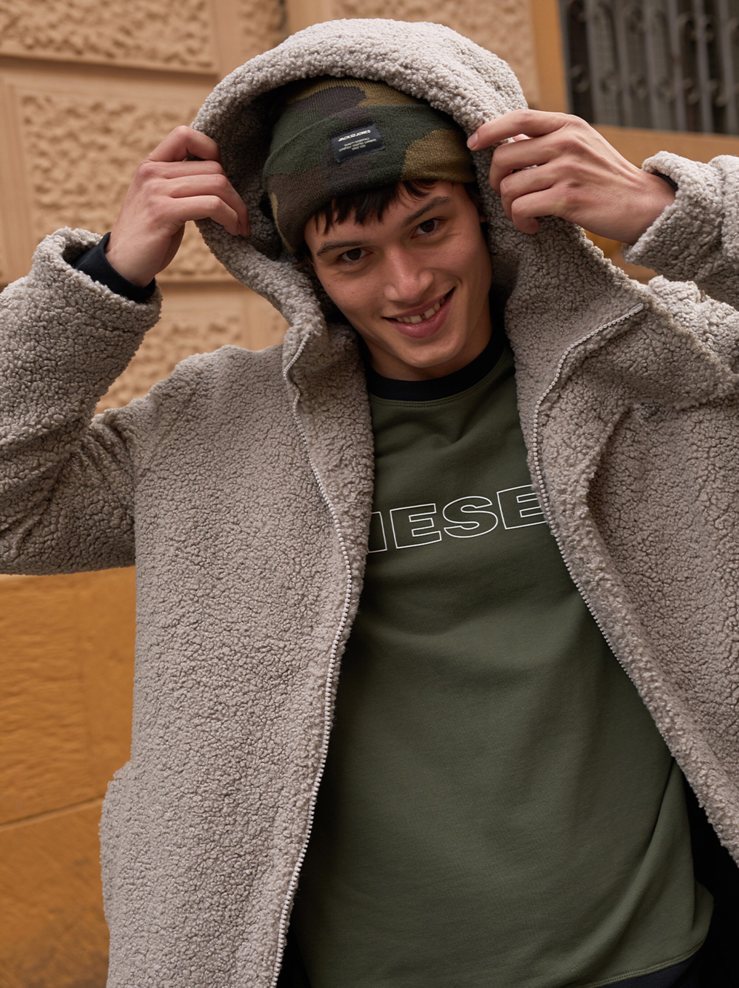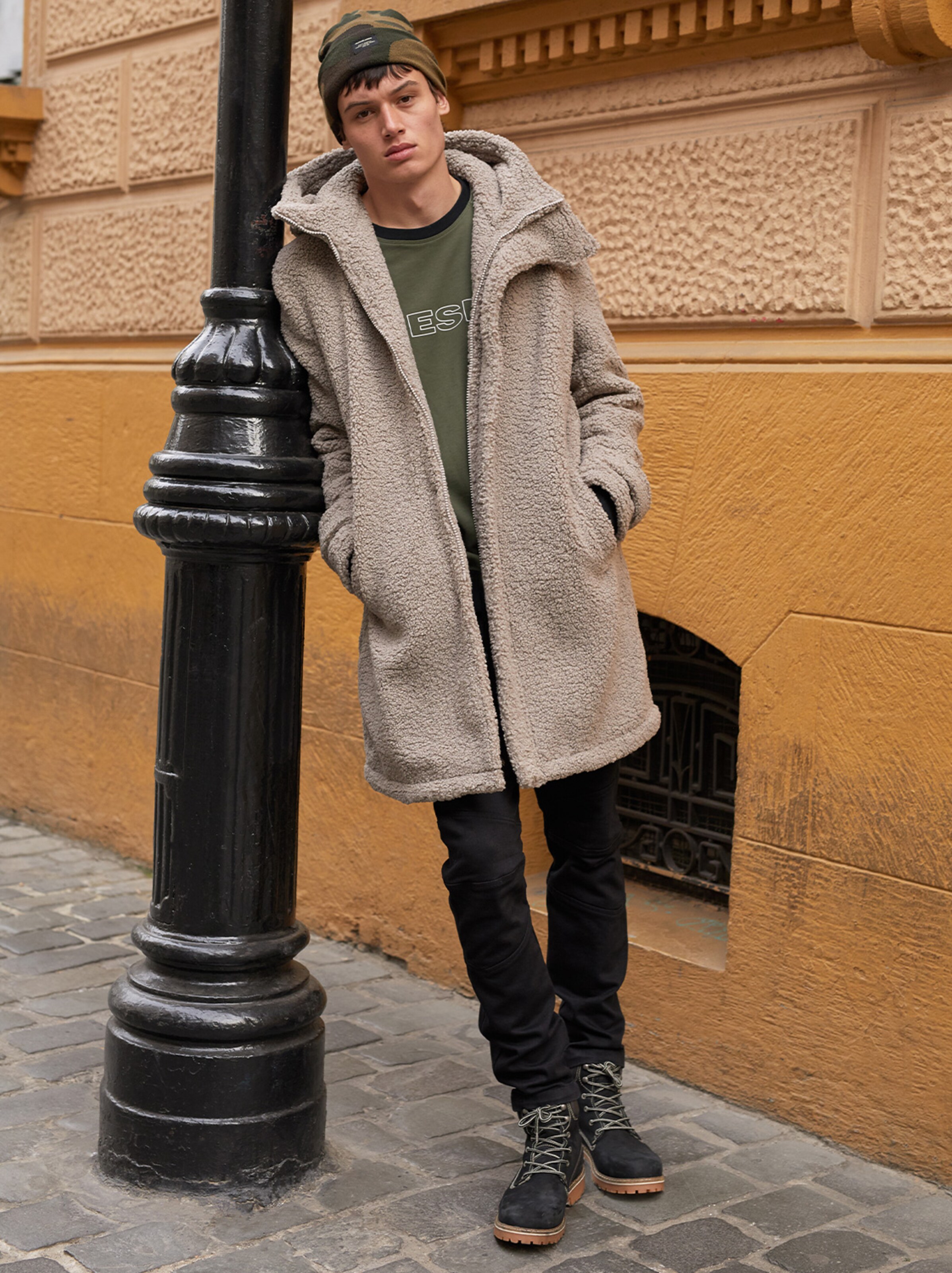 Mega cozy und gleichzeitig unfassbar cool: Diese Saison bringen Jacken und Mäntel aus weichem Teddy-Fell Dein Streetstyle-Game auf ein neues Level. Ihre sportlichen Schnitte und Details passen dabei perfekt zu lässigen Joggpants und fancy Logoshirts. Für den ultimativen Wärme-Kick tauschst Du an kalten Tagen Deine geliebten Sneaker einfach gegen sporty Boots und kombinierst noch Beanie oder Wollmütze dazu. Total angesagt: Farben wie Beige, Khaki oder Schwarz zu Camouflage-Prints.